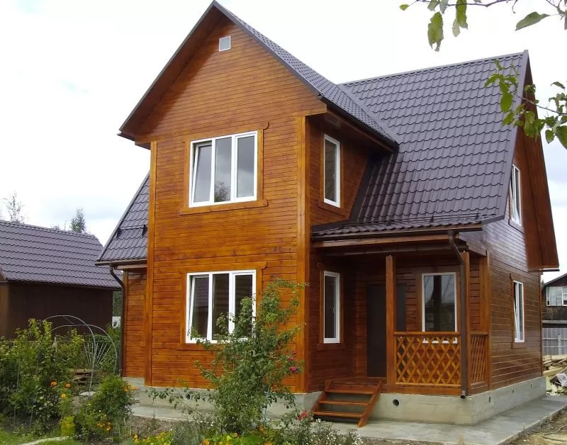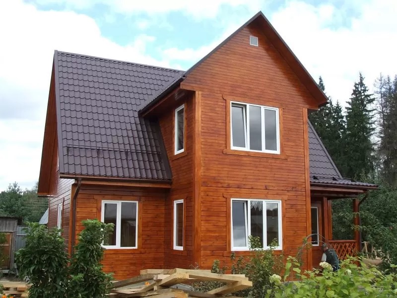 Наружная обшивка — вагонка, весь отделочный материал камерной сушки 10-12%.